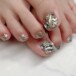 落ち着いたグレージュのワンカラーに透明感のあるシェルのアート🐚